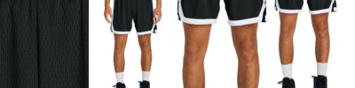 A short with moisture-wicking and odor-resistant technology is a slam dunk for your team. 4.7-ounce, 100% polyester closed-hole mesh with PosiCharge technology Moisture-wicking Odor-fighting Elastic waistband 5-inch inseam No drawcord Contrast side and hem stripe Side vents Tear-away label